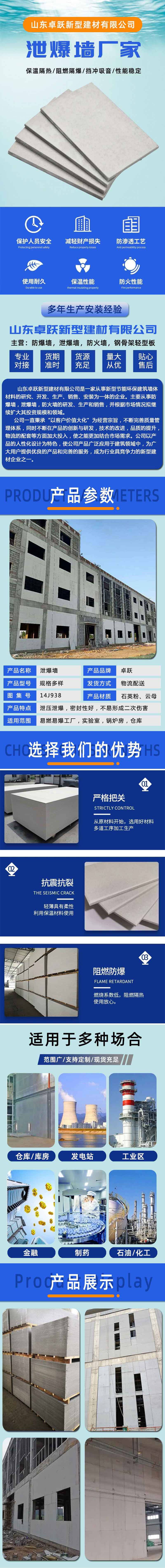 栖霞厂家供应化工厂泄爆墙 特种泄爆墙板 导热系数小 泄散迅速
